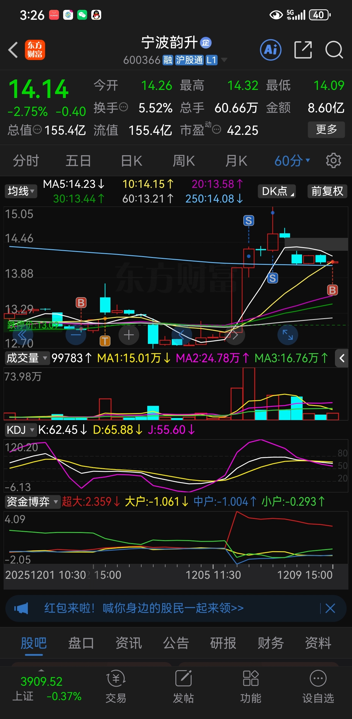 $宁波韵升(SH600366)$ 昨天本来清仓了,今天实在忍不住又被她诱惑进来了!明天静待开花结果?