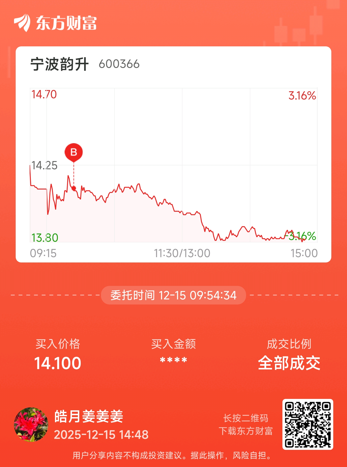 宁波韵升今天走势很弱,甚至坏。。明天观望。