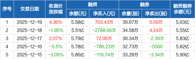 宁波韵升:融资净买入703.43万元,融资余额5.58亿元(12-19)