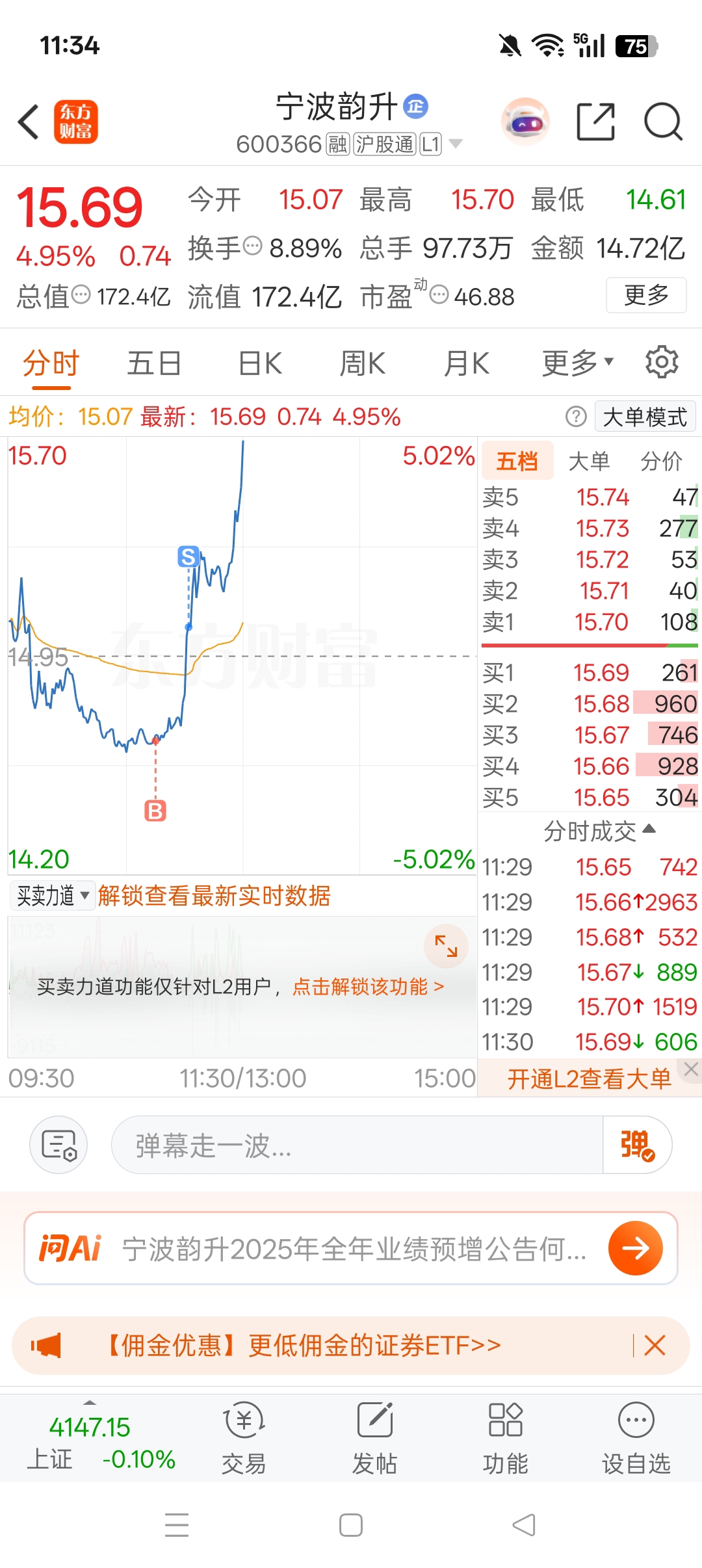$宁波韵升(SH600366)$ 大长腿啊没把握住。如果不t出去就回本了