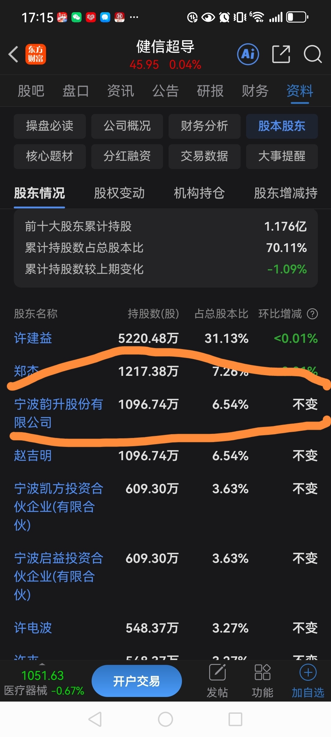 宁波持有健信超导6.54%的股份,按昨天市值就5个亿左右!你们怕个毛!稳住!有钱