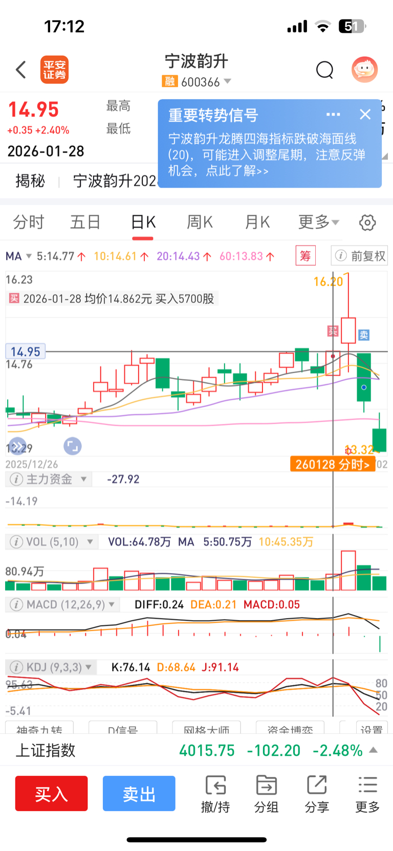 $宁波韵升(SH600366)$ 求你了,明天再来个跌停,我百分百进,没见过你这恶心的动心