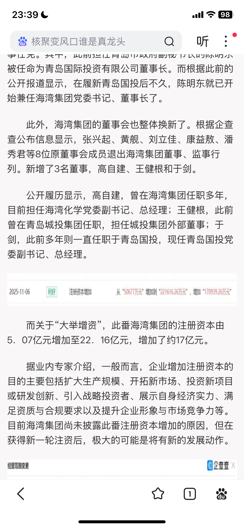 期待青岛国投在最后一个月有点实质性动作.海湾化学只有借壳一条路了.尽快停牌