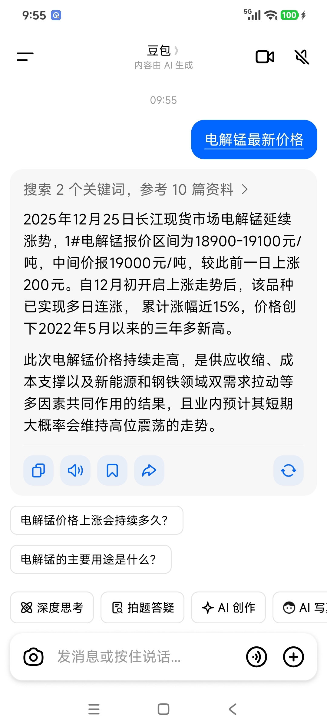 $红星发展(SH600367)$ 电解锰价格一直在涨,这么没有任何反应吗?