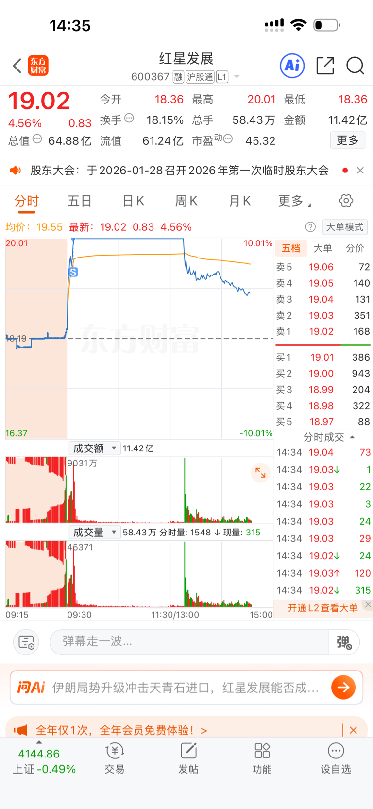 $红星发展(SH600367)$