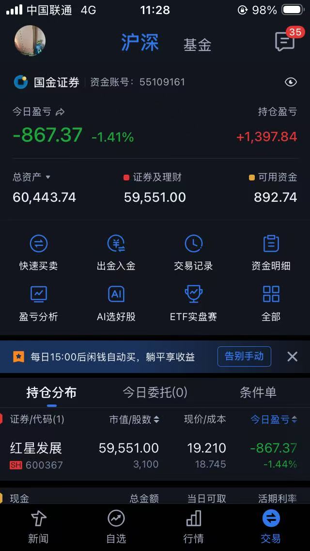 这六万、都是上一波在红星里面的收益。你老随意。我大仓位已经走了!。跌到退市就当没来过!