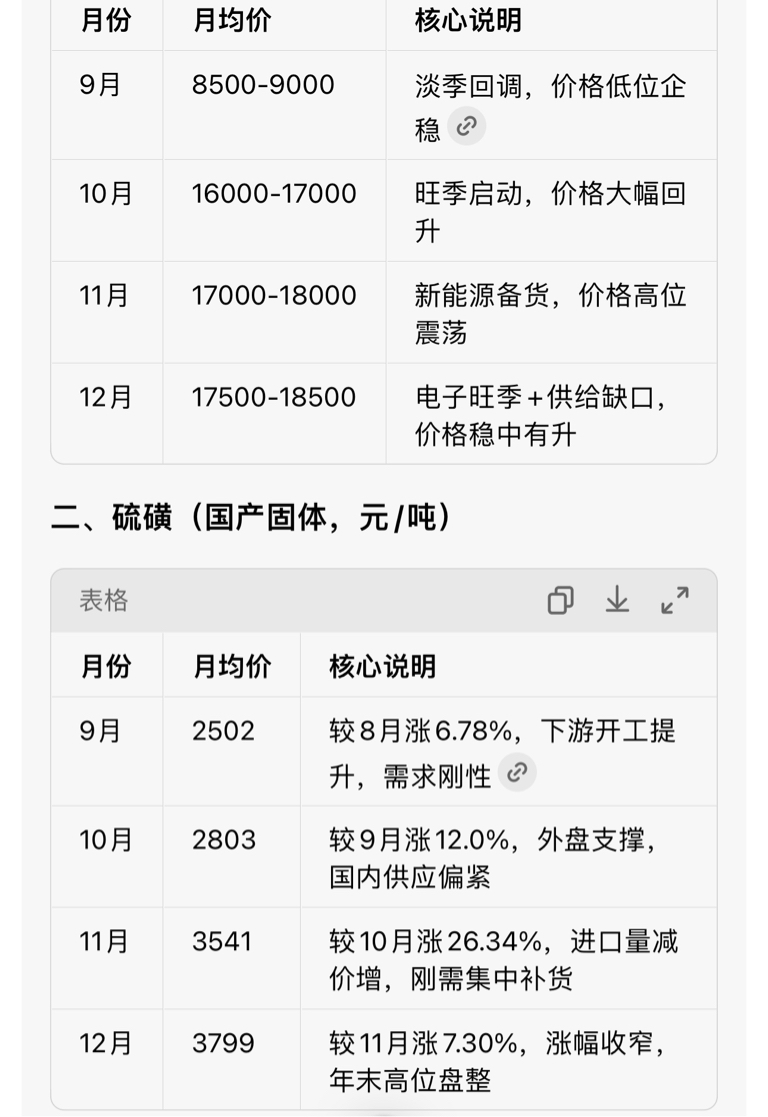 先不说其他产品,的涨价盈利预期,单看碳酸锶与硫磺10-12月的价格,就赚的盆满钵