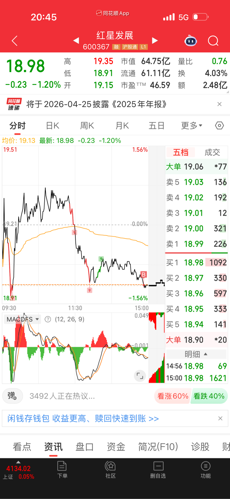 $红星发展(SH600367)$ 明天什么走势?
