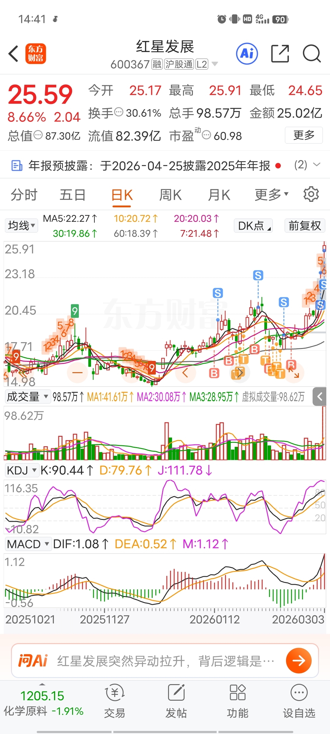 $红星发展(SH600367)$ 这波已经涨了不少了,现在是高位巨量烂板,好言相劝,最好撤退,我是走完了