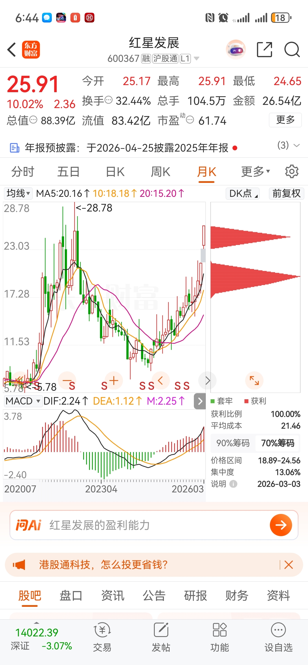 $红星发展(SH600367)$ 看看明天能不能破前高了!