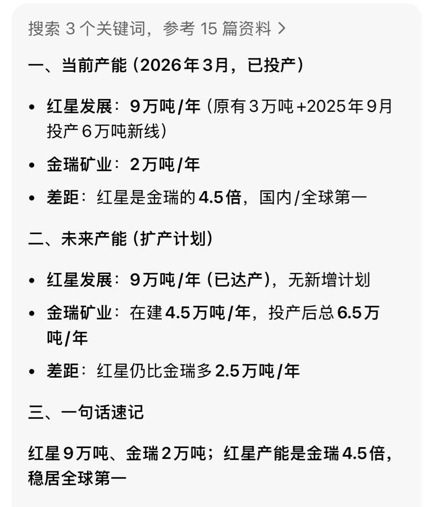 $红星发展(SH600367)$ 锶占红星营收的25%,占金瑞的94%,但是碳酸锶的产能,红星是金瑞的4.5倍。