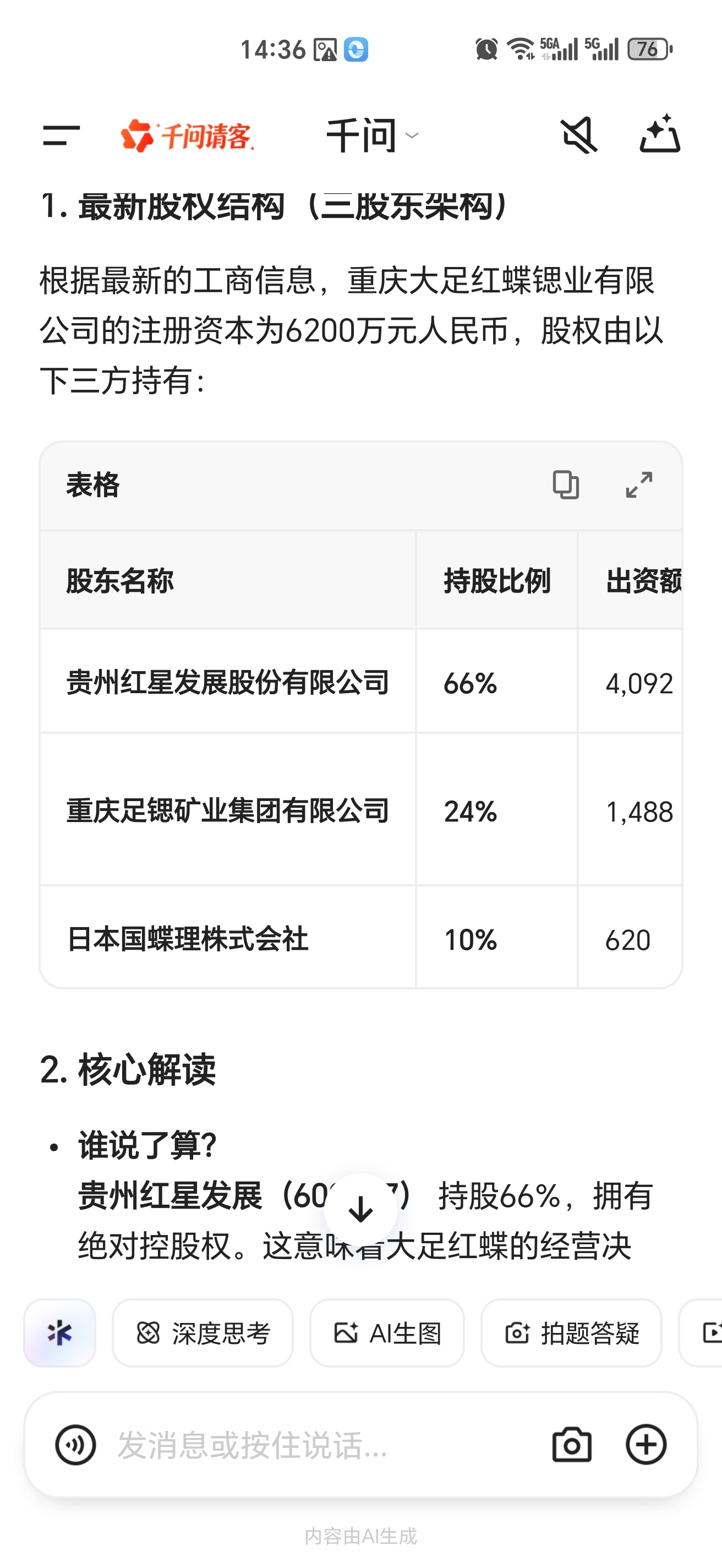 #强势机会# 贵州红星发展(600367) 持股66%,拥有绝对控股权。这意味着大足红蝶的经营决策、财务并表都是由红星发展主导的。你在二级市场上买卖的“红星发展”股票,其收益就包含了大足红蝶这一块业务的贡献。