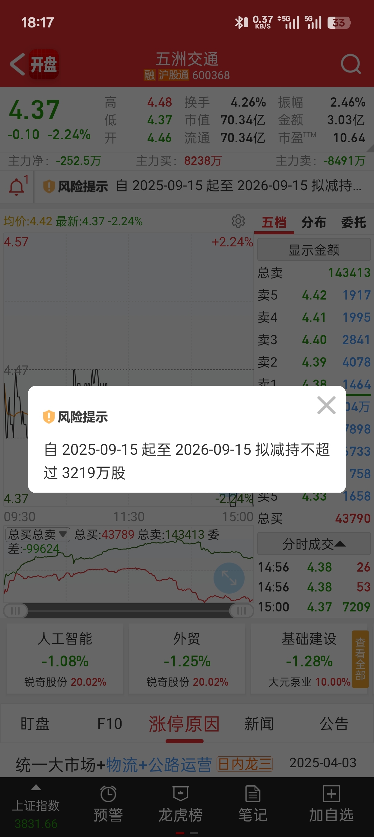 $五洲交通(SH600368)$ 怎么会有减持?大家有看到这条公告吗?