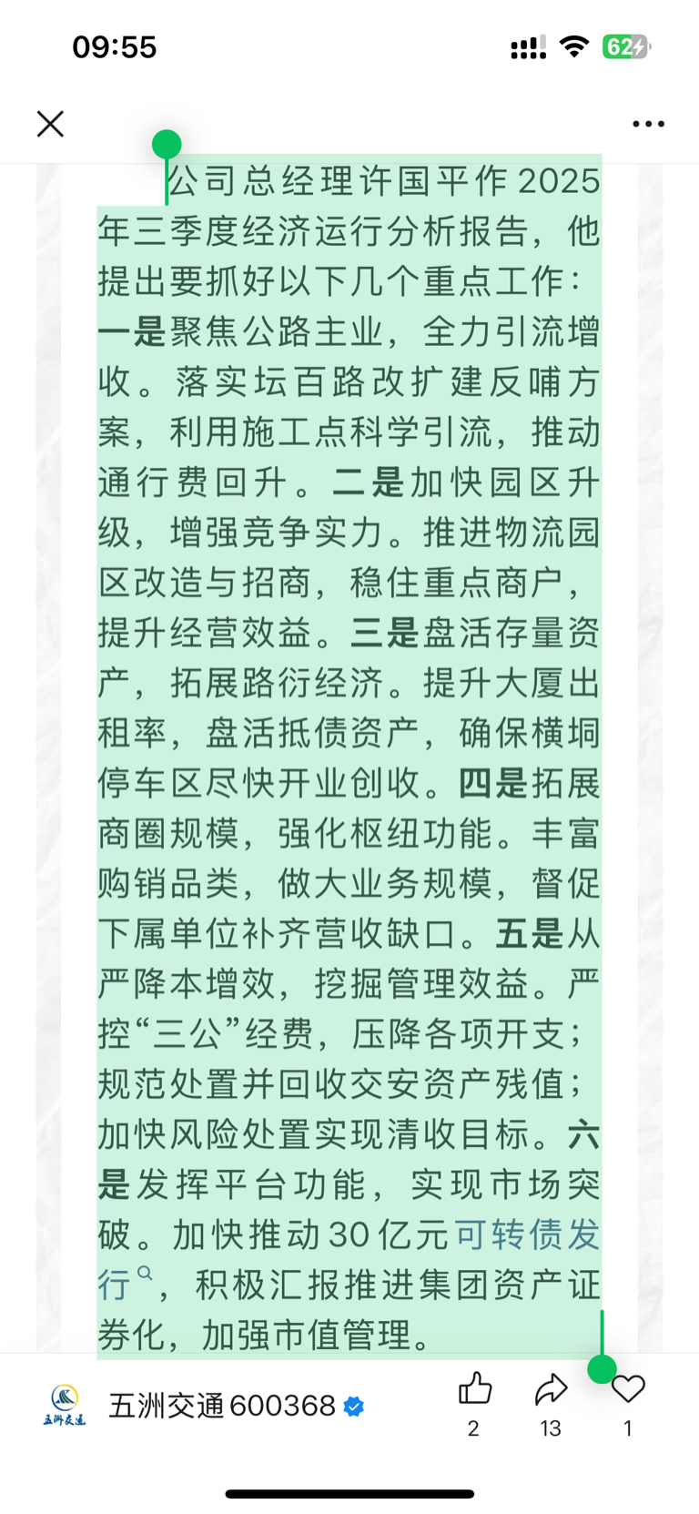 $五洲交通(SH600368)$ 可转债没有放弃,安心了,必回净资产以上!