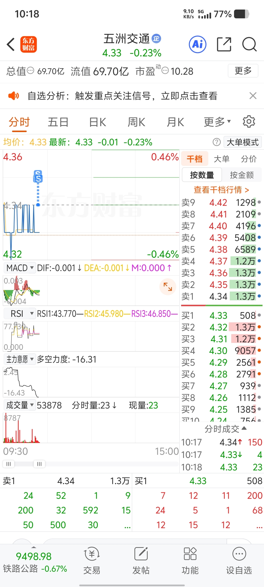 $五洲交通(SH600368)$ 拿了个把月没冒泡,他么的一个买单都没有。200手挂了一早上才跑出去