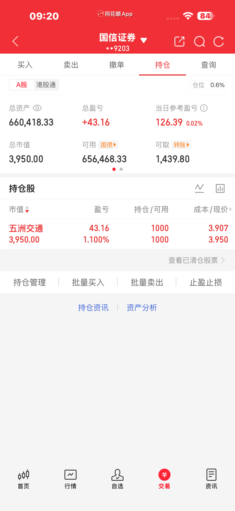 $五洲交通(SH600368)$ 不会跌破我的成本价吧
