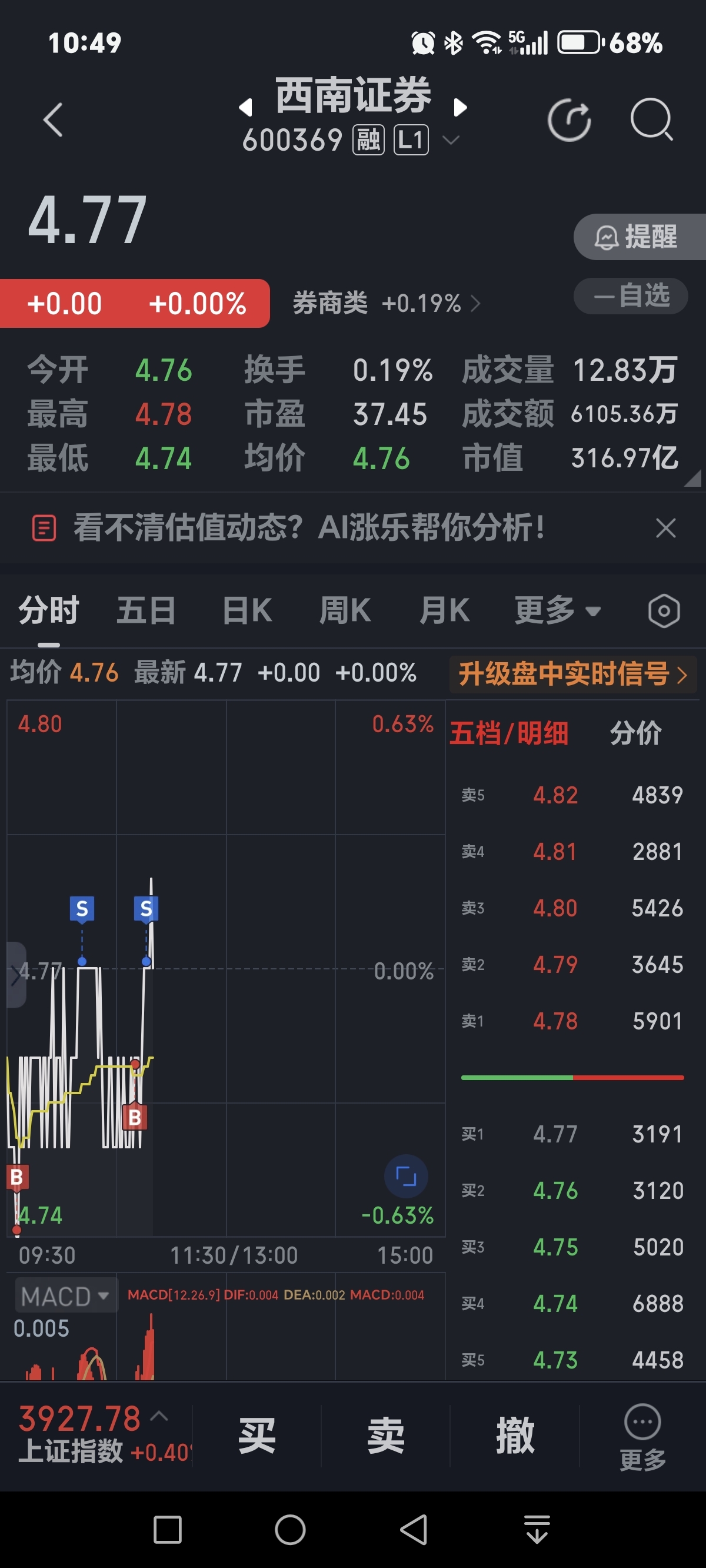 $西南证券(SH600369)$ T两下