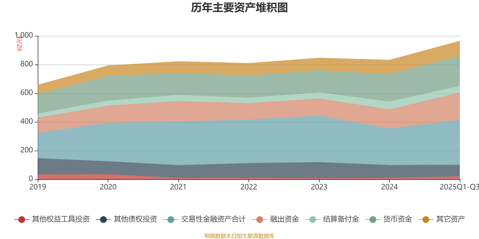 资产重大变化方面,截至2025年三季度末,公司融出资金较上年末增加41.47%,占公司总资产比重上升3.55个百分点;其他债权投资较上年末减少9.41%,占公司总资产比重下降2.34个百分点;交易性金融资产合计较上年末增加22.84%,占公司总资产比重上升1.82个百分点;结算备付金较上年末减少13.26%,占公司总资产比重下降1.63个百分点。