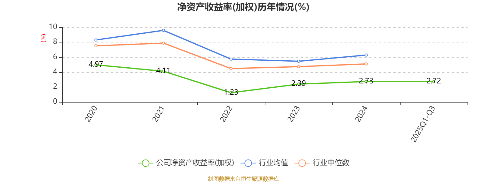 盈利能力方面, 2025年前三季度公司加权平均净资产收益率为2.72%,同比上升0.83个百分点。