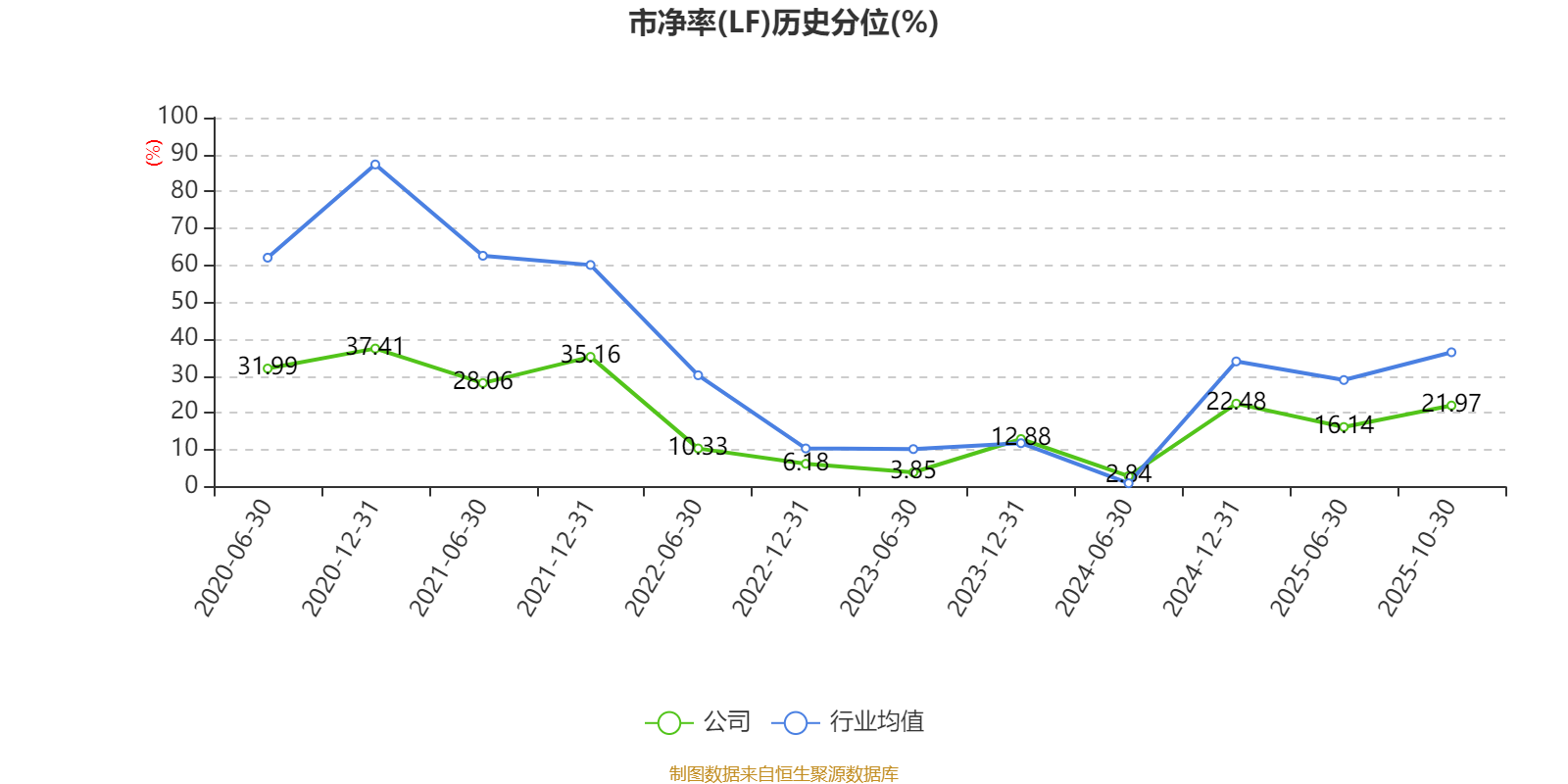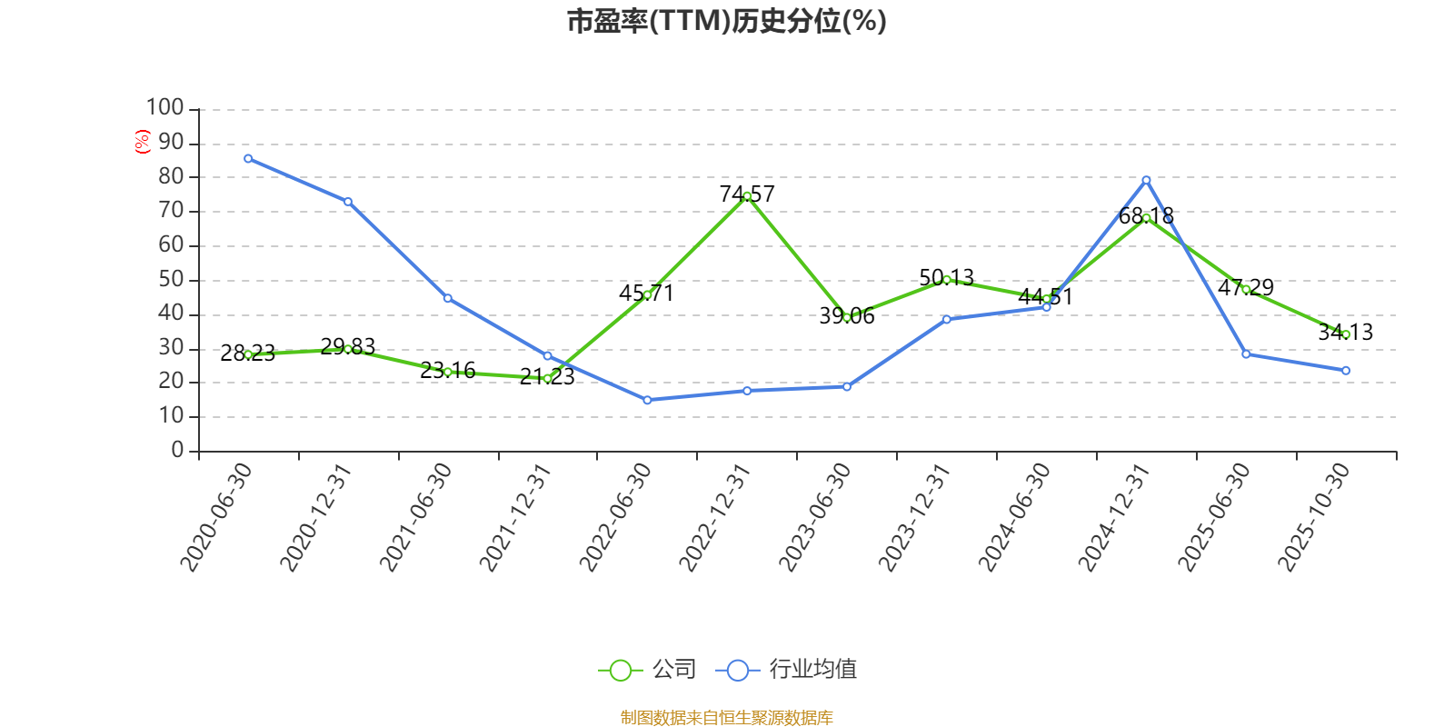市盈率、市净率为负时,不显示当期分位数,会导致折线图中断。