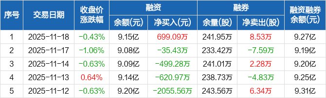 西南证券:融资净买入699.09万元,融资余额9.15亿元(11-18)