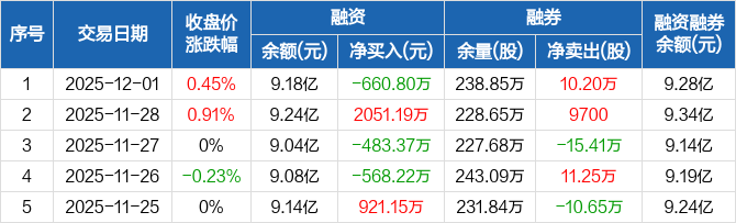 西南证券:融资净偿还660.8万元,融资余额9.18亿元(12-01)