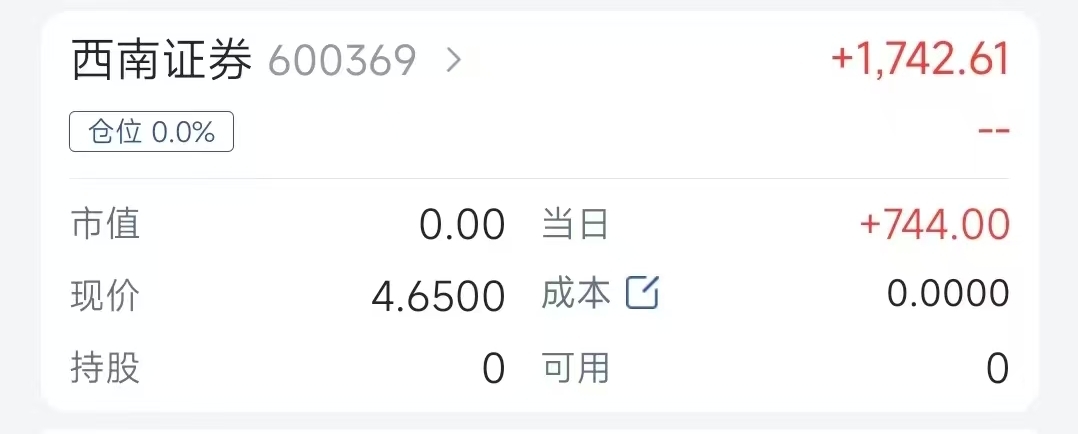 《下车了》西南证券我4.63元下车了。大概4.3%吧。1700元。如果有倒车接人
