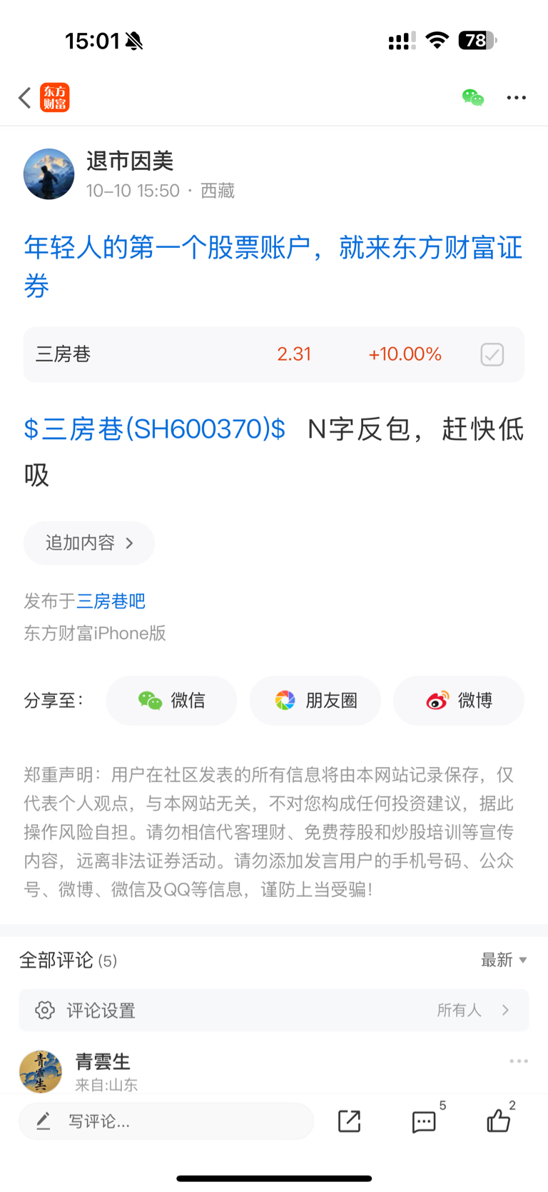 温馨提示: 1.根据《证券法》规定,禁止编造、传播虚假信息或者误导性信息,扰乱证券市场;2.用户在本社区发表的所有资料、言论等仅代表个人观点,与本网站立场无关,不对您构成任何投资建议。用户应基于自己的独立判断,自行决定证券投资并承担相应风险。《东方财富社区管理规定》