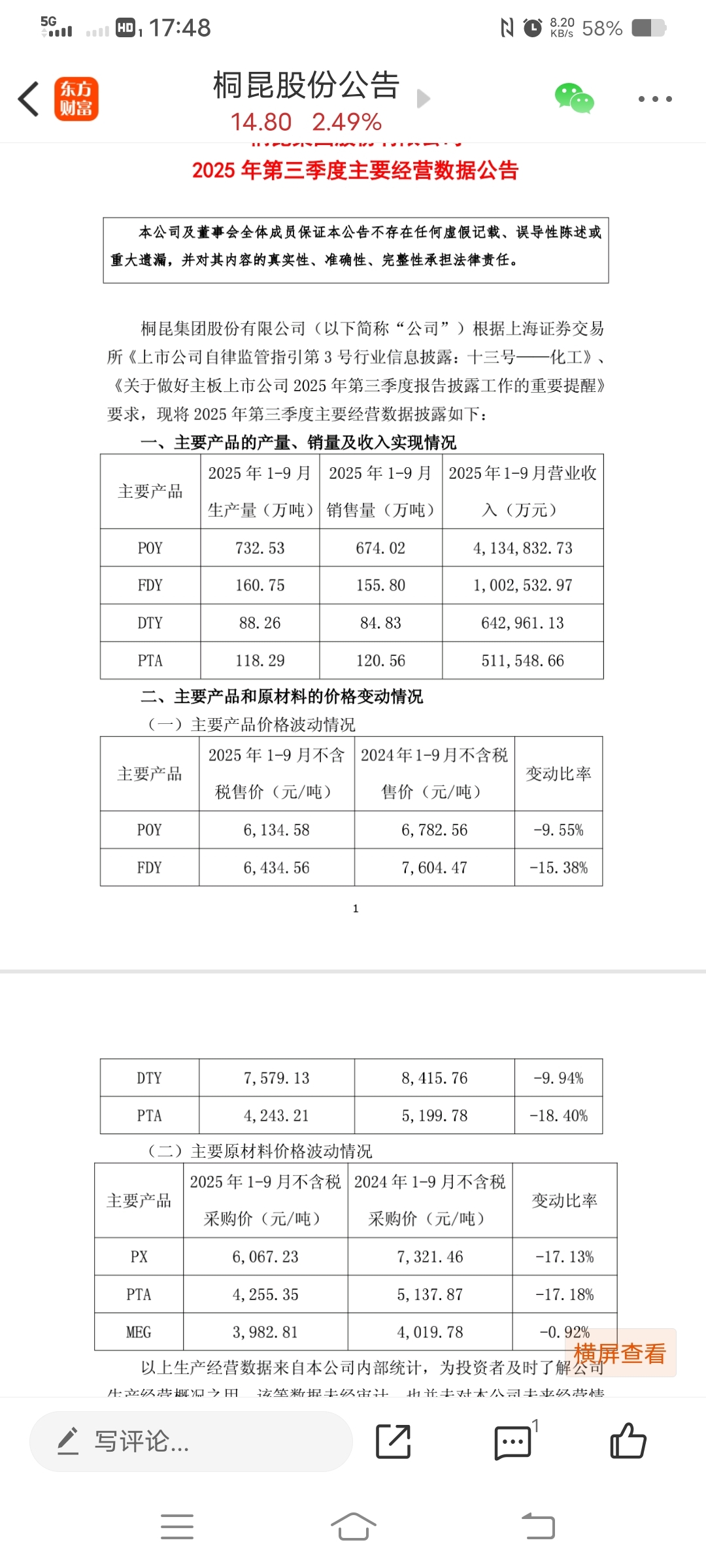 $三房巷(SH600370)$ 这PTA售价今年下降同比百分之二十左右,你这三季报能别发还是别发了,又得多亏几个亿。