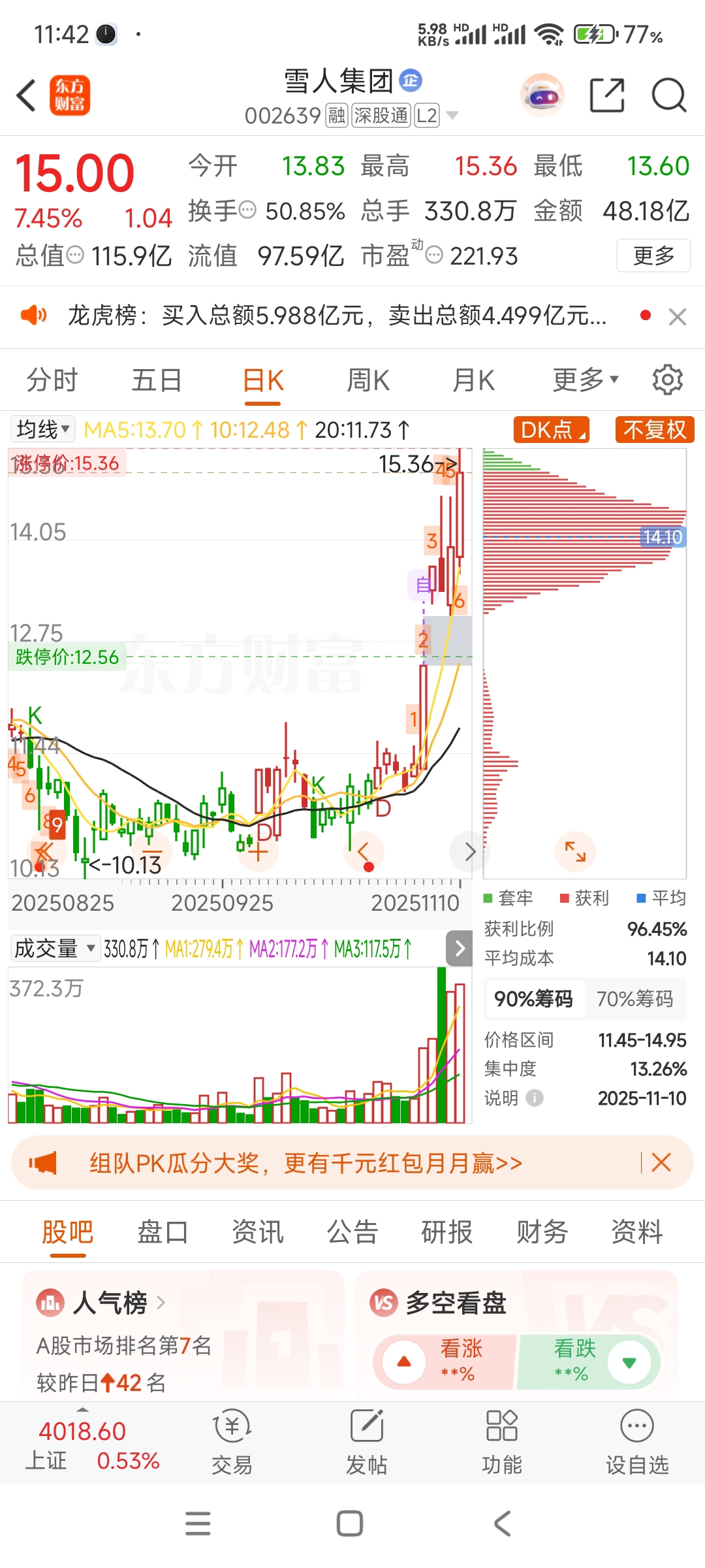 $三房巷(SH600370)$ 和雪人有点像,不知道会不会明天充高