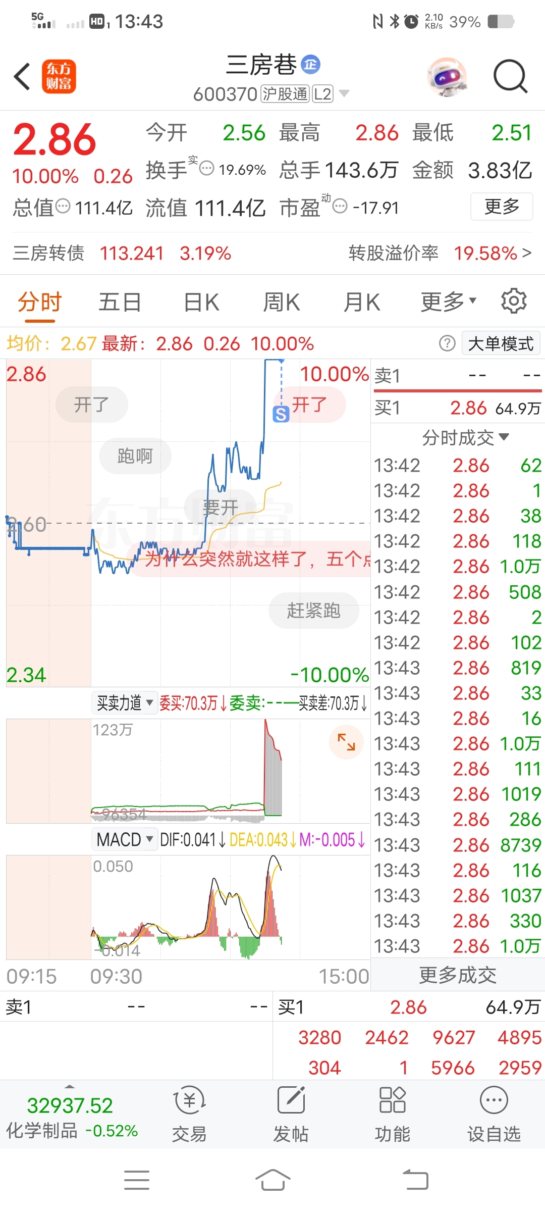 $三房巷(SH600370)$ 既然要开板,那我就先清仓了,留下的兄弟们发财。