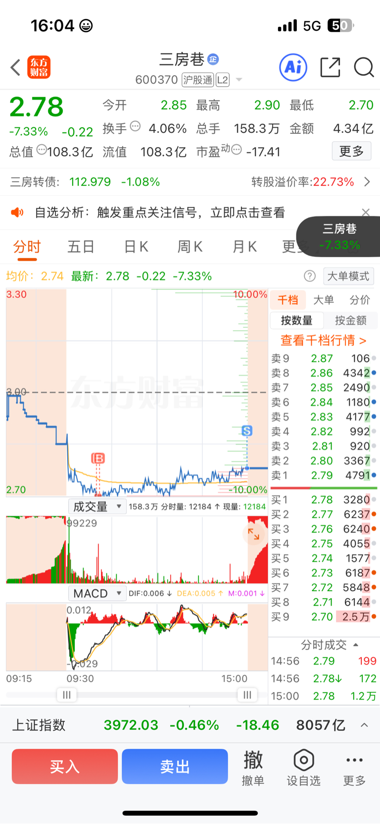 $三房巷(SH600370)$ 明天在等一天,看看筹码会不会上移,现在市场不好做哦