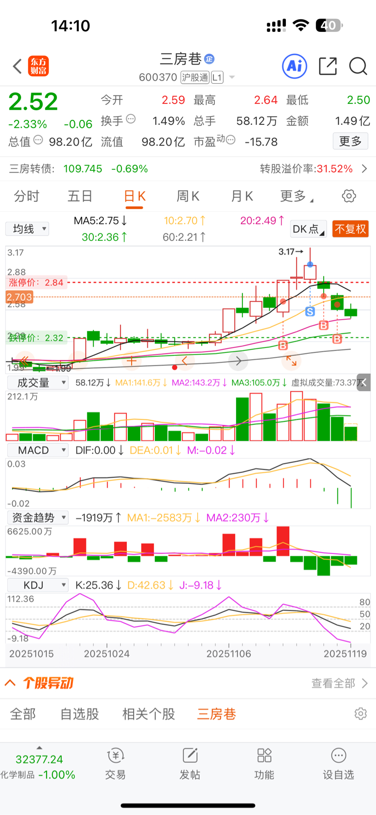 $三房巷(SH600370)$ 你个拉几 两次高开都没有T,对你期望太高了,全部给回你,撤了,