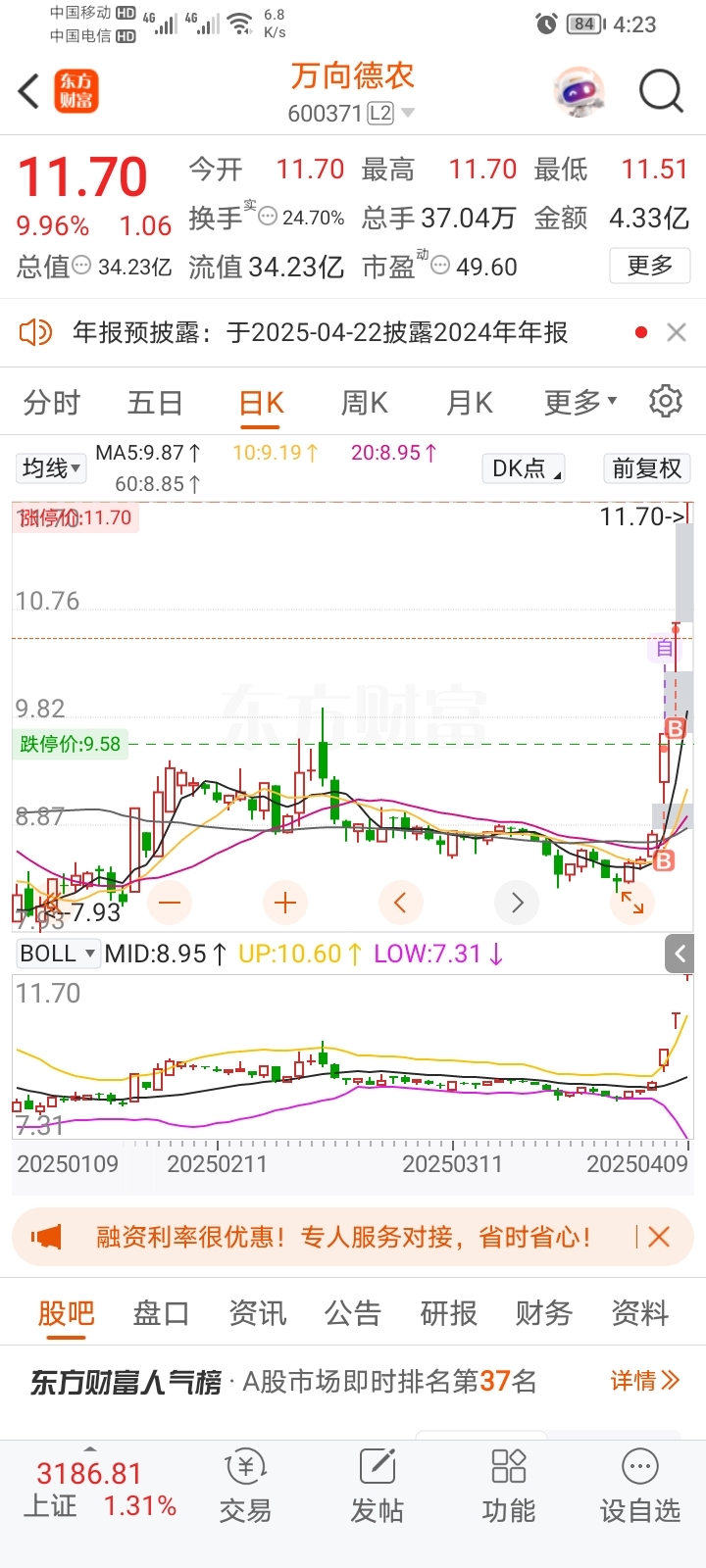 $万向德农(SH600371)$ #炒股日记#