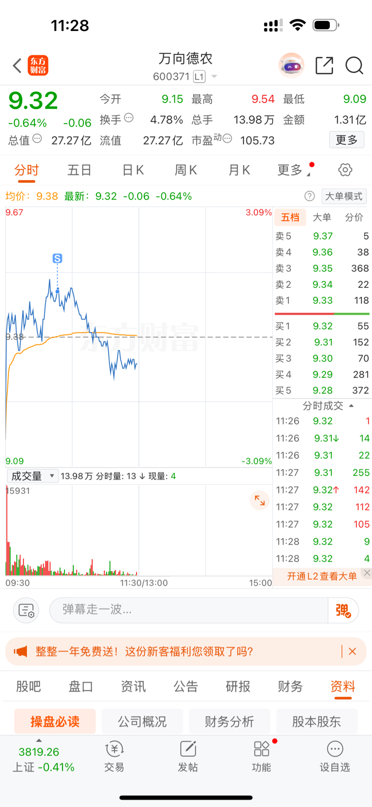 $万向德农(SH600371)$ 走了删自选,垃圾股,股性太差