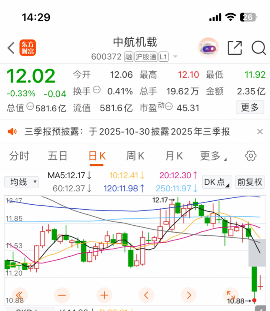 $中航机载(SH600372)$