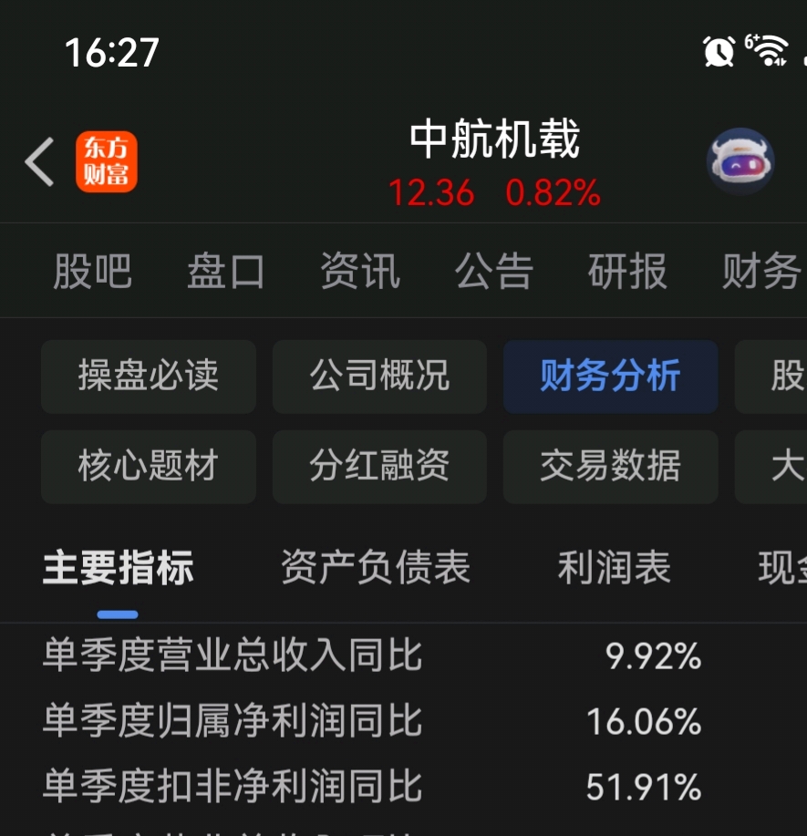 $中航机载(SH600372)$ 第三季度单季扣非净利润增速相当亮眼!