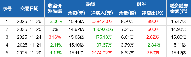 中航机载:融资净买入5384.4万元,融资余额15.46亿元(11-26)