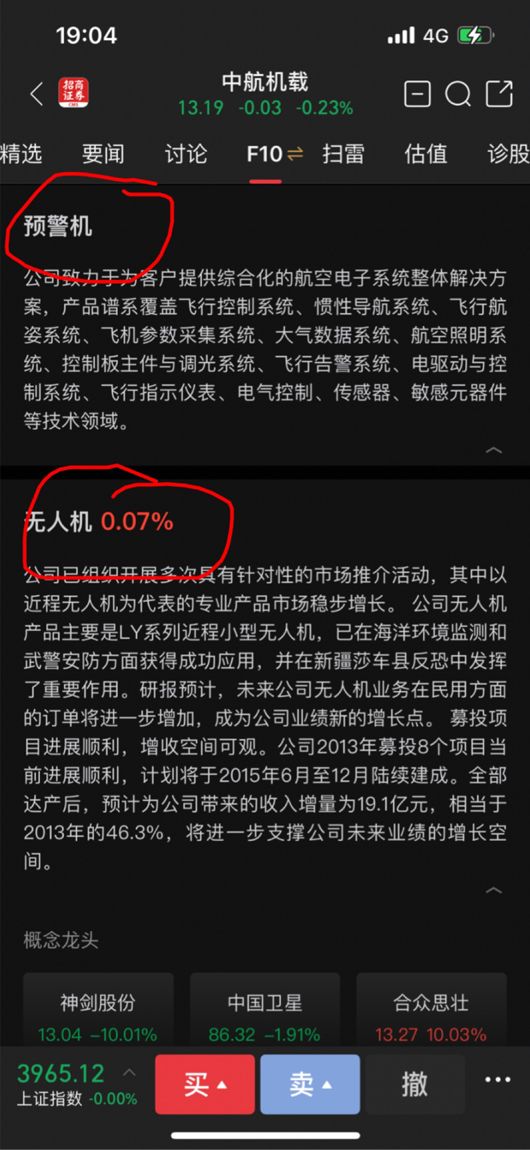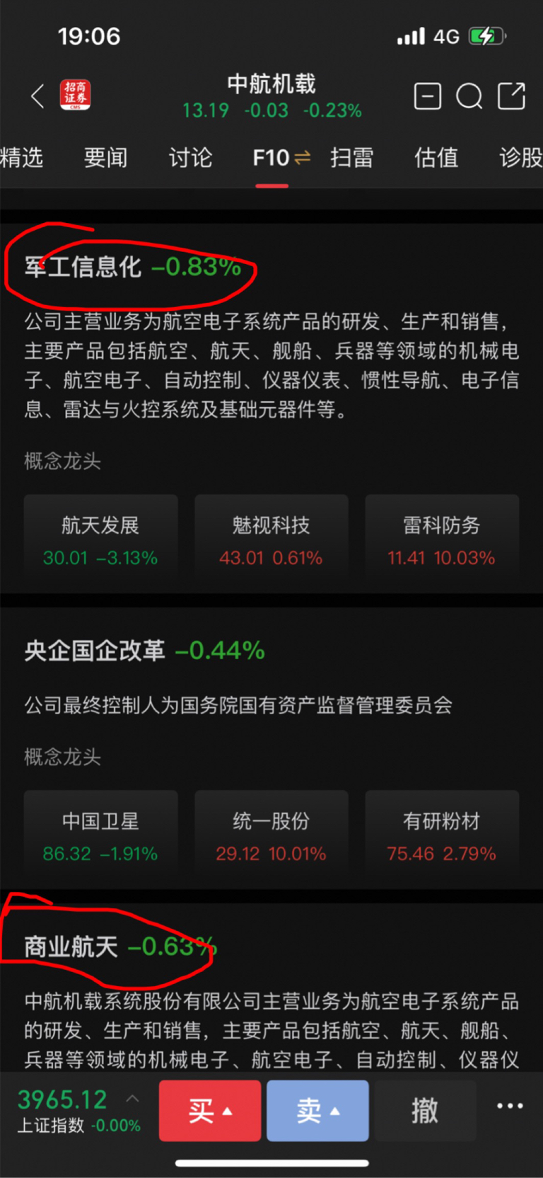 大家维护一下股票的题材,以下图片是招商证券里的中航机载的题材概念,大家可以和董秘