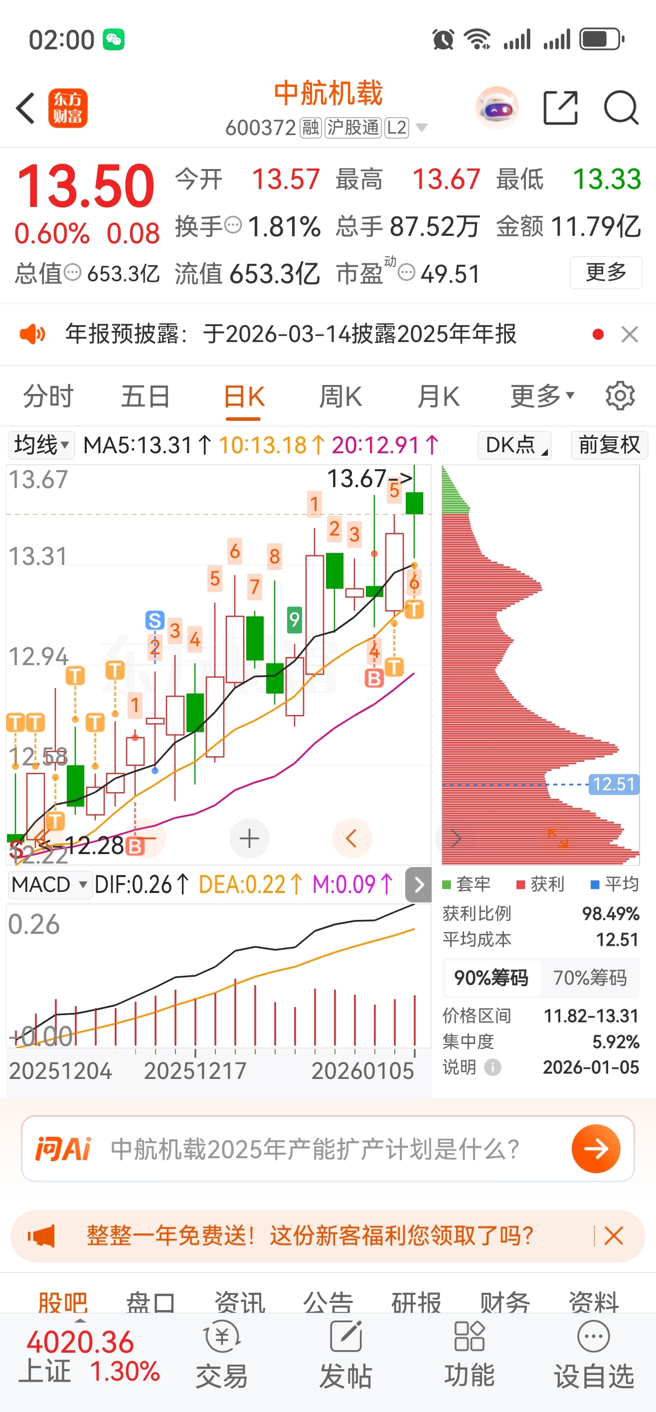 $中航机载(SH600372)$ 感觉好的不要不要的