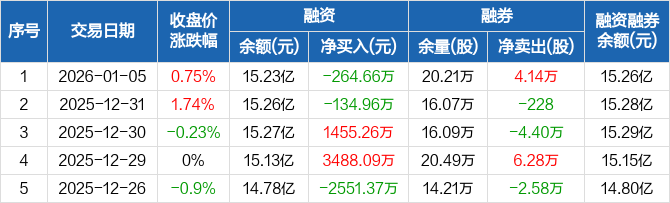 中航机载:融资净偿还264.66万元,融资余额15.23亿元(01-05)