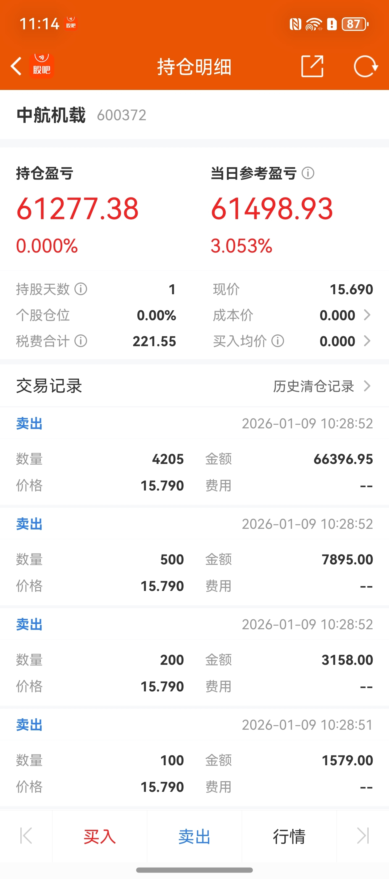 昨天板上拿的,早盘商业航天很强,这里换手还是不够,先走一步,留下的发财