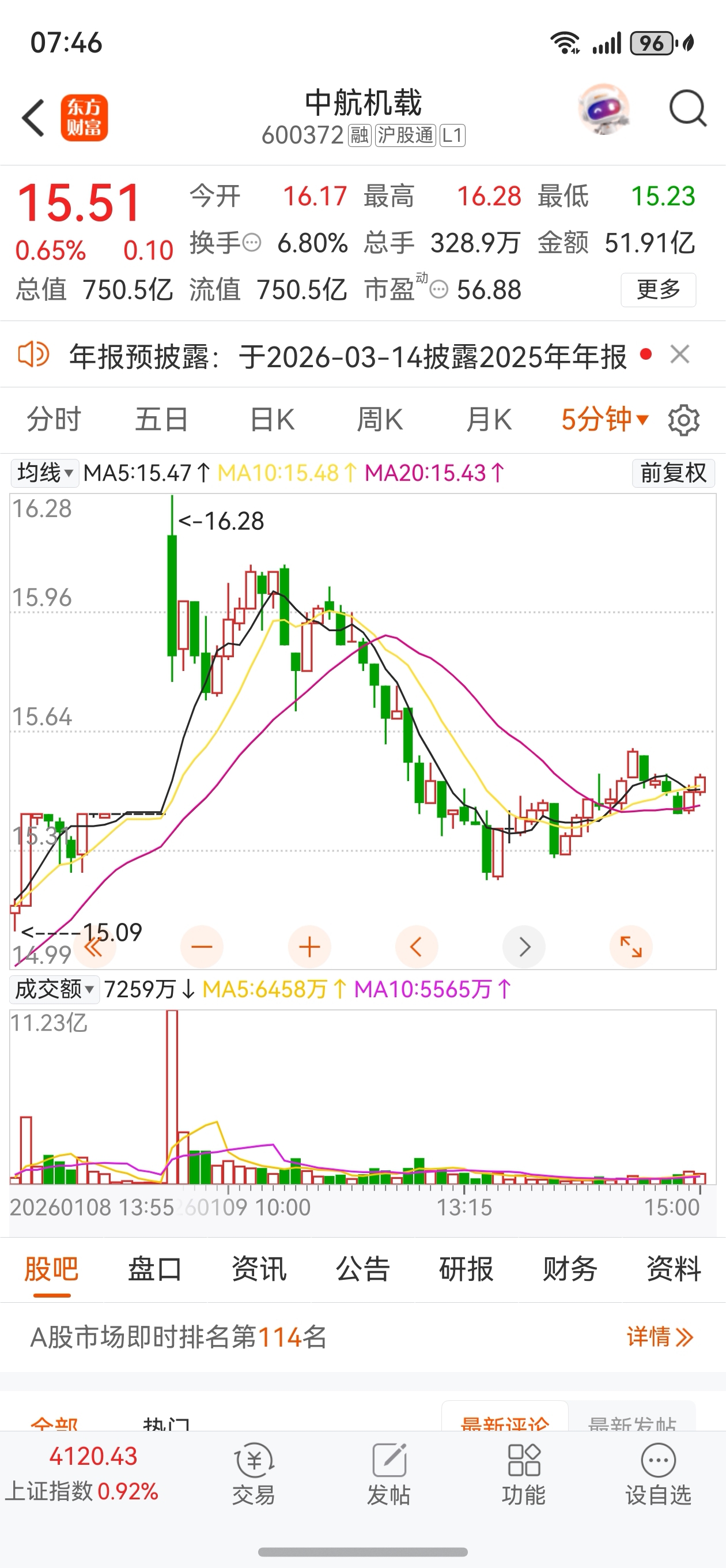 $中航机载(SH600372)$ 周五,开盘5分钟放巨量,全天换手率6.8%。高开低走窄幅整荡。