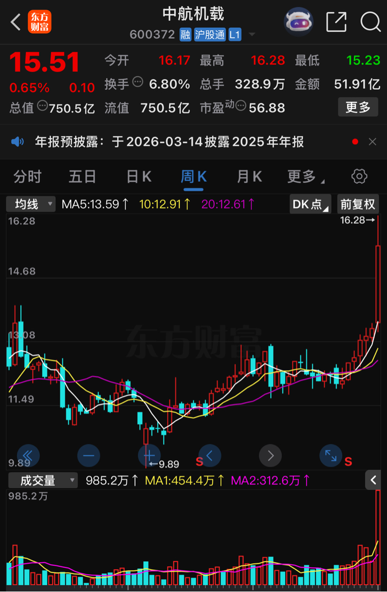 $中航机载(SH600372)$