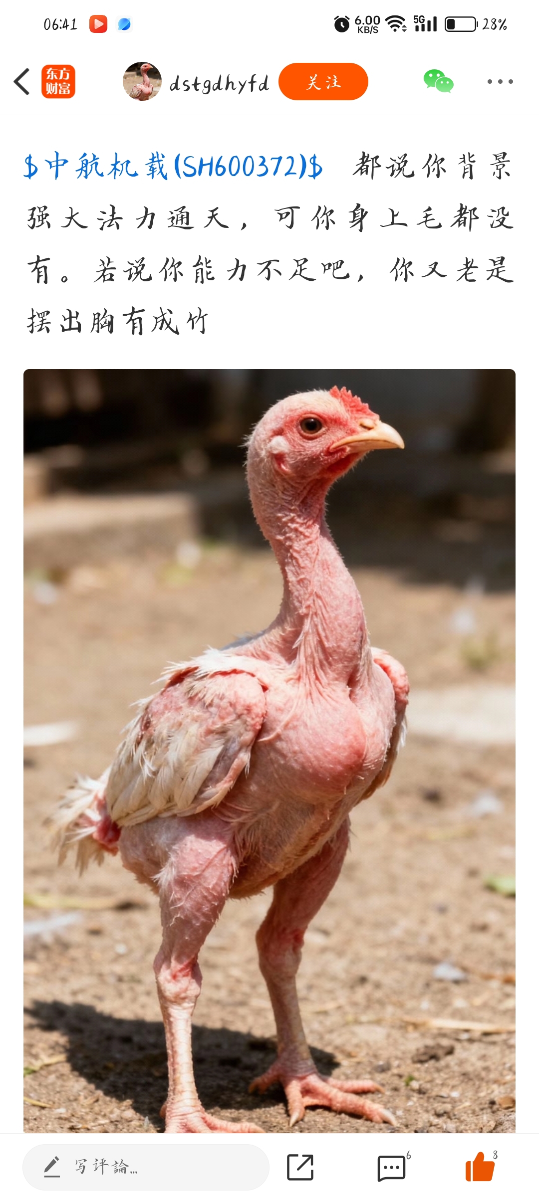 $中航机载(SH600372)$ 这位股友真的是笑死人了,中航鸡仔