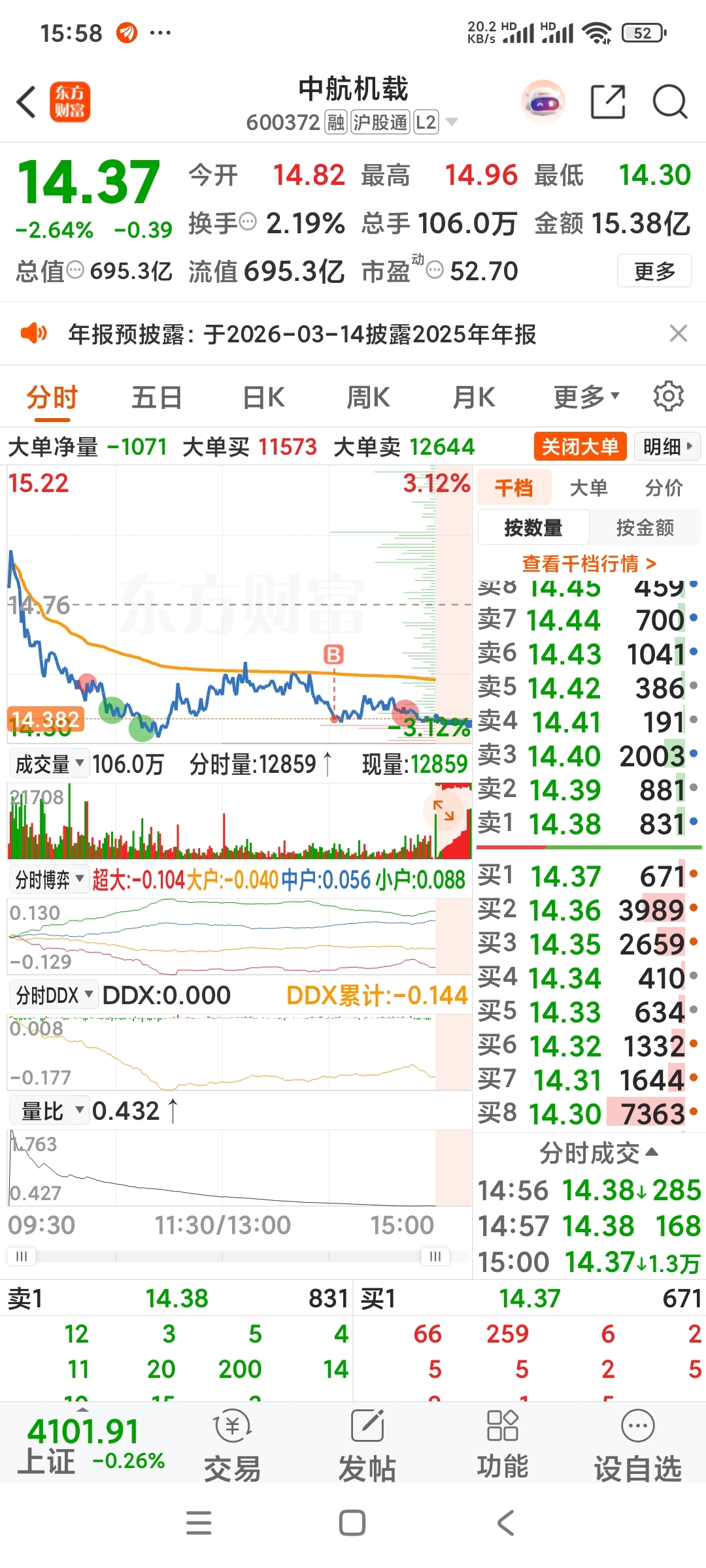 $中航机载(SH600372)$ 目前被套一个点!看这走法不像见底走势!今天低点当止损点!不破就拿着破了走人!今天小仓位来试错