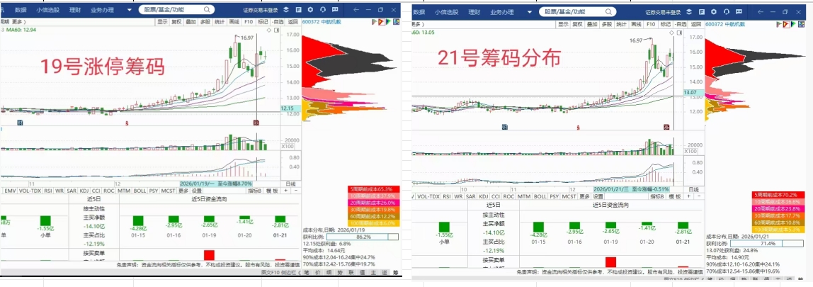 那些说筹码峰没动的,睁眼对比看看,没动的那是你们的参数设置不对,别被延时的给欺骗