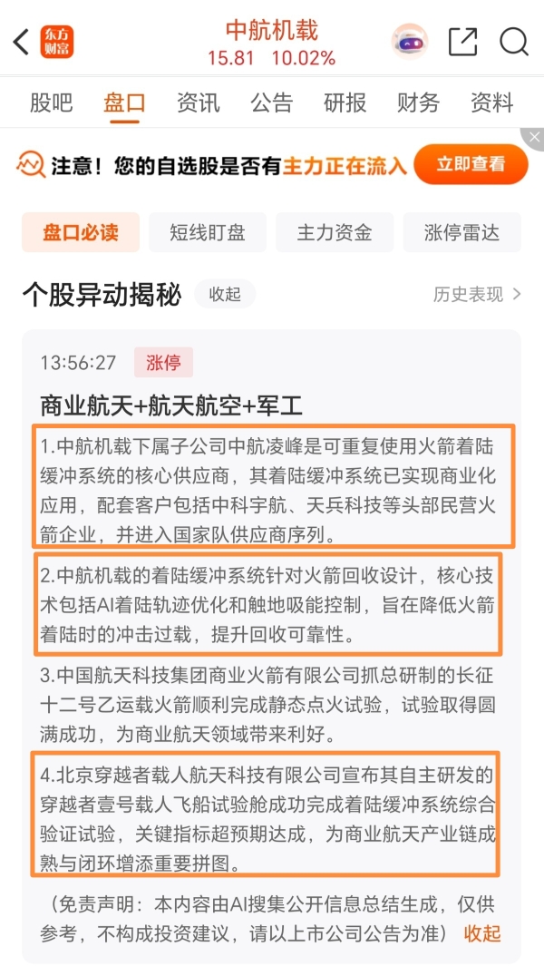 $中航机载(SH600372)$ $北摩高科(SZ002985)$ $三角防务(SZ300775)$ 预祝三剑客全部涨停板,唯一拖后腿的中航机载,赶紧跟上来!