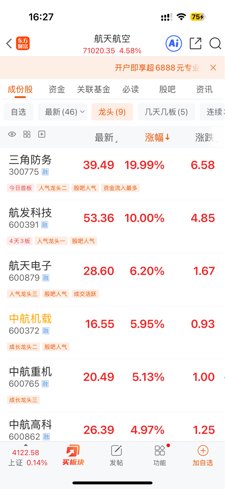 $中航机载(SH600372)$ 什么时候变成龙头股了