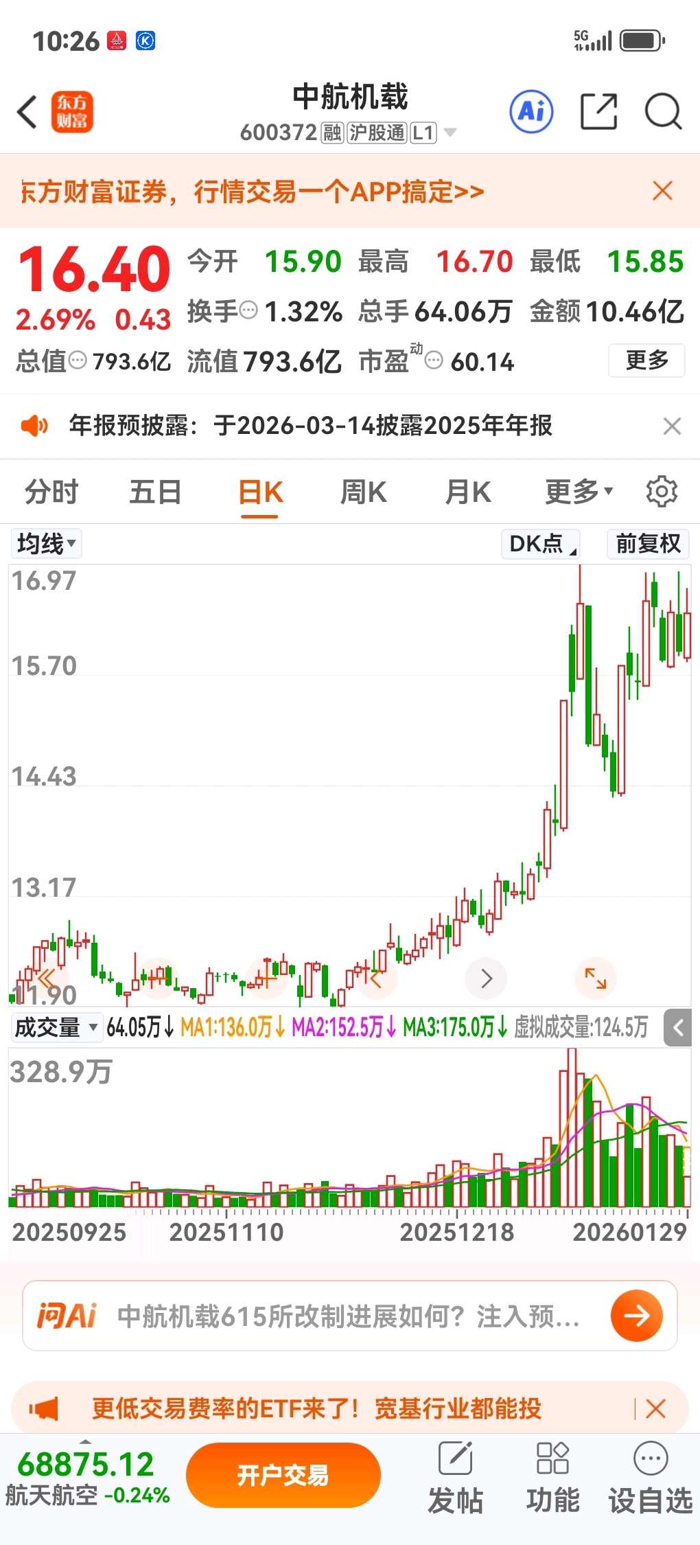 $中航机载(SH600372)$ 买入,上升三角形整理末端,向上突破机率大